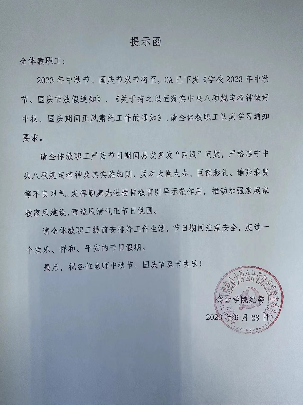 w88win体育官网入口纪委关于中秋节、国庆节的提示函