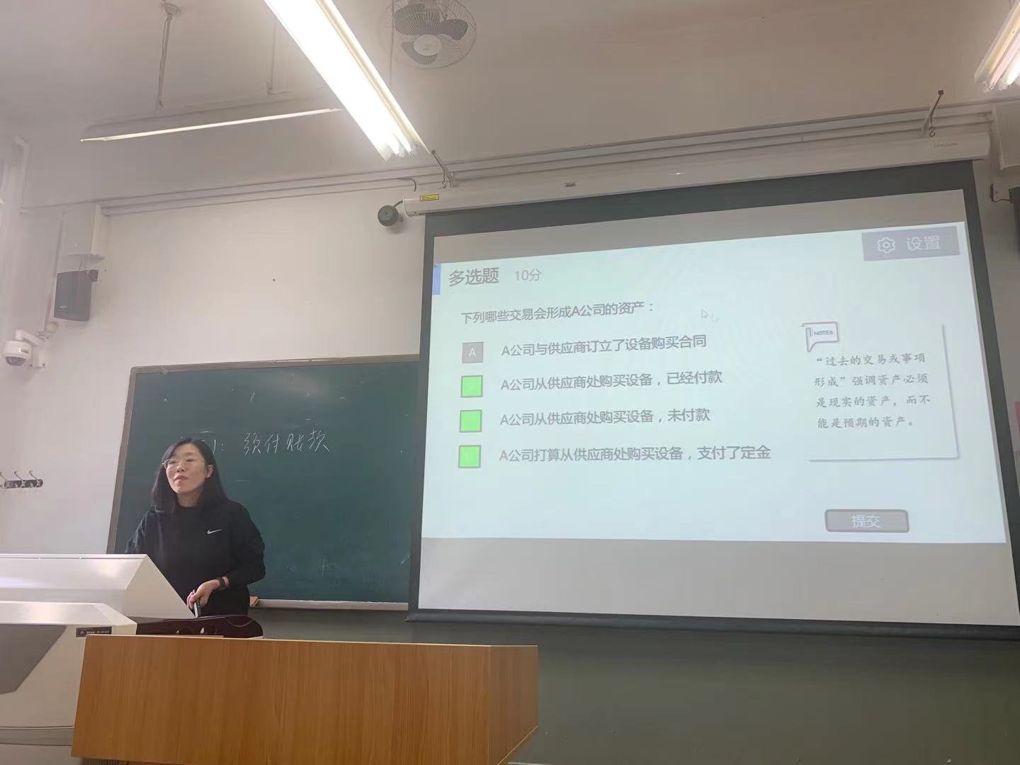 2021年10月13日,w88win体育官网入口在1号教学楼112教室举办“思政课程教学示范课”活动,会计公司党委书记李新锁、经理励贺林、副经理白默和全体教师观摩了教学示范课。财务系彭飞老师与会计系张莉老师分别讲授了《财务管理》课程的“货币时间价值”和《会计学》课程的“会计要素和会计等式”内容,两位老师利用雨课堂、板书等多种教学手段,把专业课程理论知识与“诚信”、“公正”的核心价值观有机融合,在专业知识讲授的过程中帮助大家建立起“知敬畏、存戒惧、守底线”的高度自觉性。