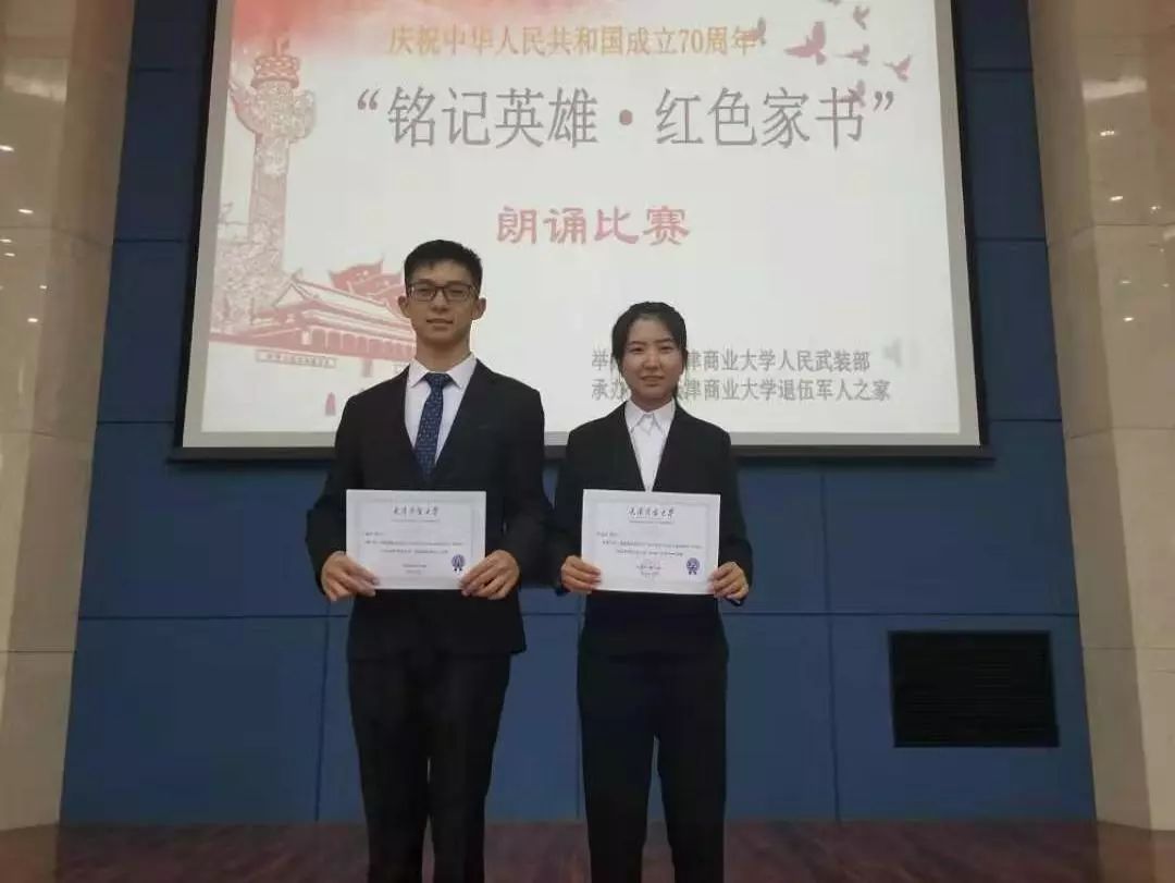 9月29日下午,为庆祝中华人民共和国成立 70 周年,人民武装部在图书馆三楼国际报告厅举办了“铭记英雄·红色家书”朗诵比赛。王豪杰、刘瑾瑶、李志晶三名同学代表公司参加了此次活动。在杜先颖老师和张玉萌老师的指导下,三位同学朗诵的《高捷成致叔父书》最终荣获一等奖!