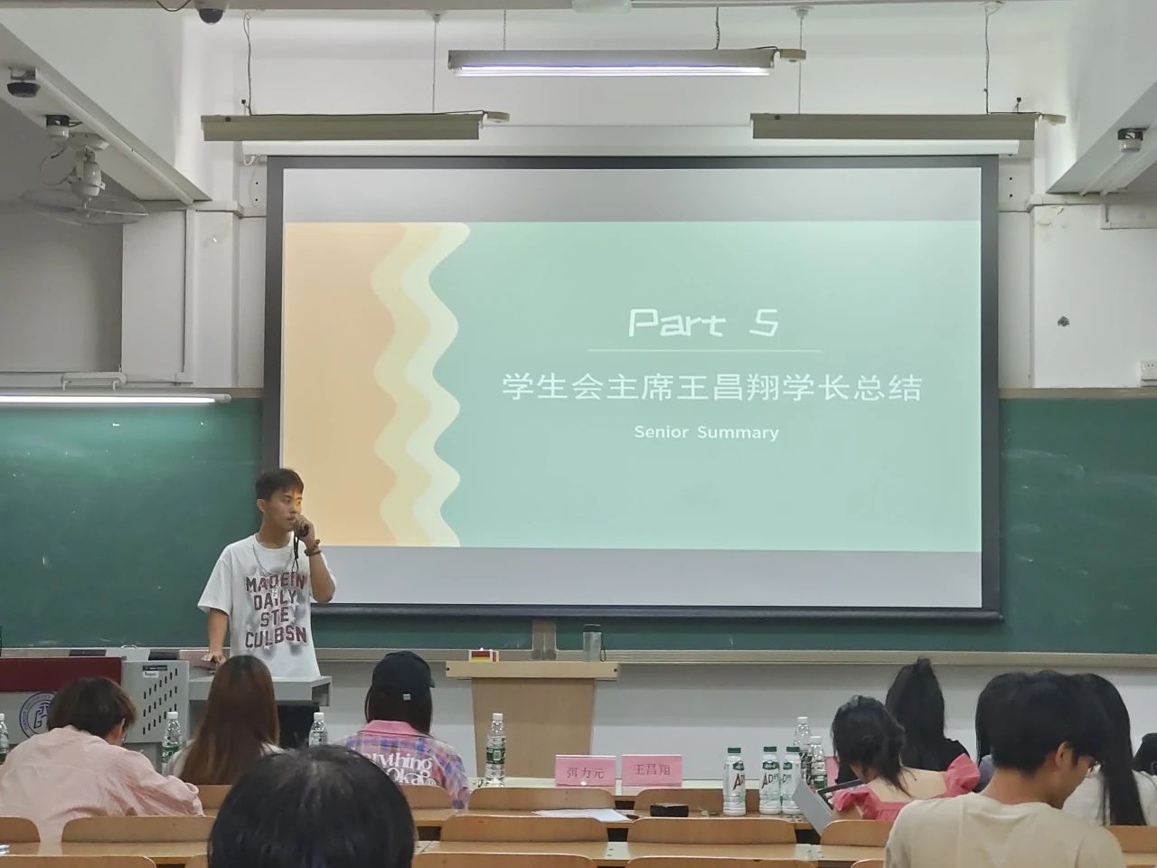 美育实践小组展示结束后,员工会主席王昌翔主席表示每个小组展示内容丰富多彩,准备充分,希望在座的各位同学在日后的舞台上能够更加的自信,绽放出属于自己的光彩。